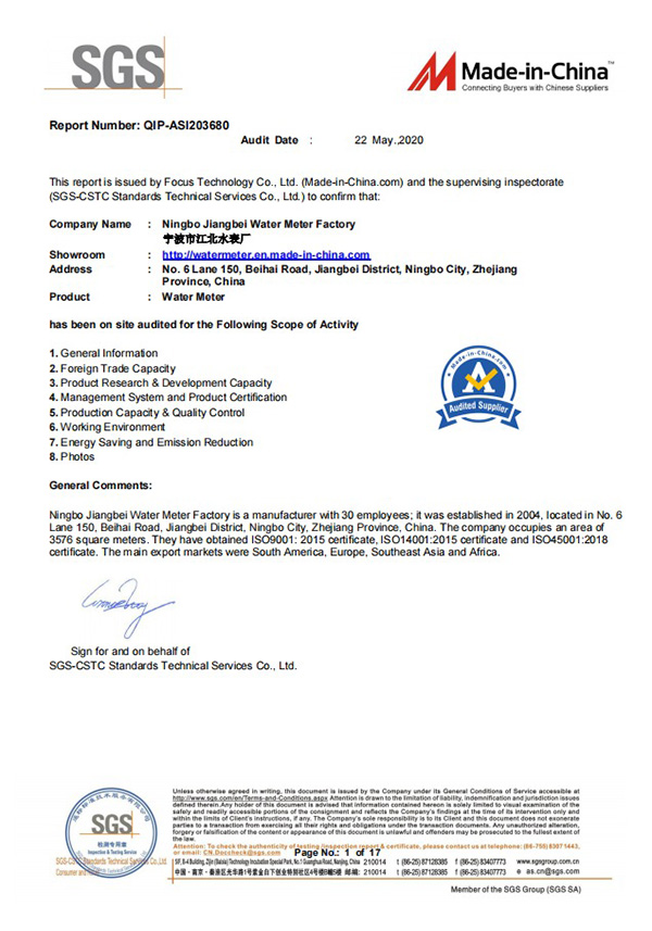 全國水表產(chǎn)品質(zhì)量連續(xù)穩(wěn)定合格企業(yè)